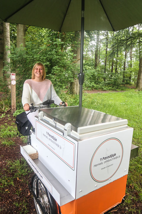 Bij 't Paradijsje staat het ambachtelijke centraal. Het ijs wordt stap per stap en met liefde bereid. Er worden geen voorgemaakte ijsmixen gebruikt! Onder het motto -weet wat je eet- worden chemische poedertjes achterwege gelaten en wordt plaats gemaakt voor natuurlijke grondstoffen. Een kwalitatief, ambachtelijk ijsje eten in een sprookjesachtig landschap, dat is wat 't Paradijsje voor jou wil waarmaken! Met haar gekoelde bakfiets naar eigen ontwerp, bouwde de ijsbereidster haar eigen stukje hemel op aarde uit... En ze kan niet wachten om het met jullie te delen!